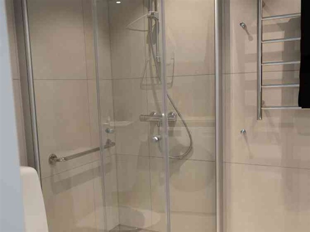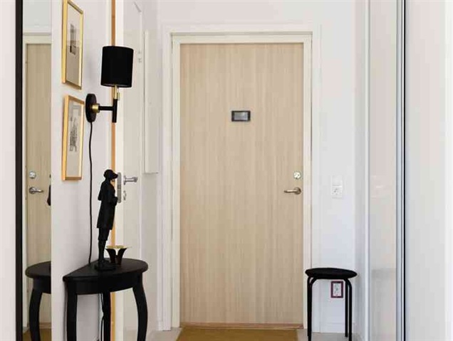 This contemporary one-bedroom apartment features a glazed balcony within the Senior+ concept housing, designed specifically for residents aged 65 and above. The layout offers an open-plan design combining the kitchen and living area into one cohesive space. The kitchen is equipped with stainless steel appliances, including an induction cooktop, built-in oven, dishwasher, microwave, and a combined refrigerator and freezer unit. The bathroom boasts tiled walls and a tiled floor, complemented by a shower area enclosed with glass panels. It also includes a combined washer and dryer along with a vanity unit beneath the washbasin. Throughout the apartment, oak parquet flooring is present, except in the hallway and bathroom, which have tiled floors. The residence is designated as a non-smoking environment.Merparten av hyresvärdens lägenheter kan ingå i ett kösystem baserat på köpoäng