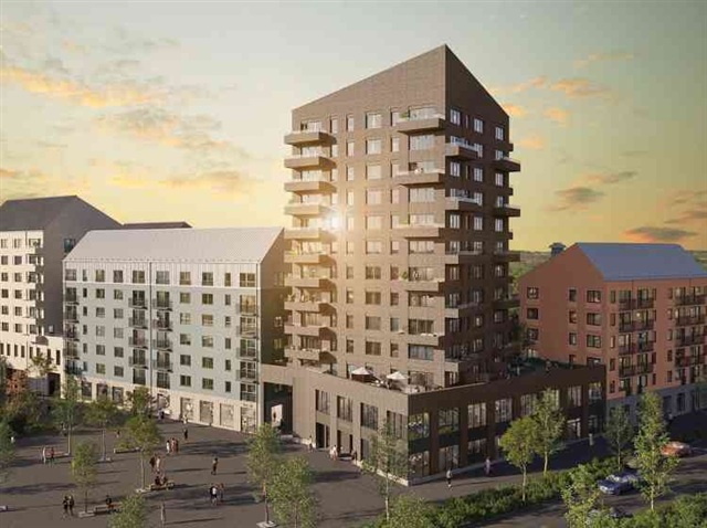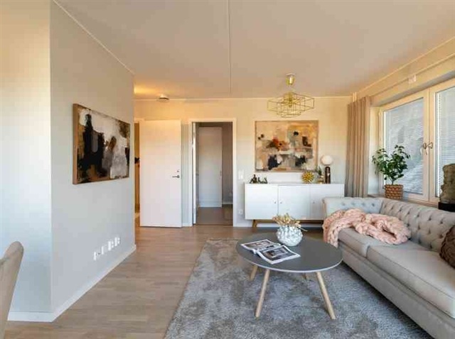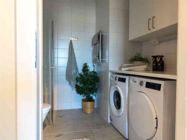 This bright and attractive three-room apartment is situated on the fifth floor. Recently constructed, it features a balcony measuring 2 square meters. The kitchen is equipped with beige cabinet doors and stainless steel appliances, including a refrigerator and freezer, dishwasher, induction cooktop, built-in oven, and microwave. The walls throughout the apartment are painted in a warm, light shade. The bathroom has tiled walls and a tiled floor, complemented by a shower area with glass panels. Additionally, it includes both a washing machine and a tumble dryer. Oak parquet flooring runs throughout the unit, except in the hallway, where tiled flooring can be found. Storage space is provided in the attic. This building employs individual measurement and billing for hot water consumption. The interior photos shown in the advertisement are from the model apartment, while the images below offer examples from a three-room unit within the same building.Merparten av hyresvärdens lägenheter kan ingå i ett kösystem baserat på köpoäng