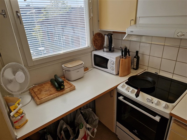 The kitchen could use some renovation as it looks quite worn, but at least the stove is brand new. The bathroom on the other hand is quite recently renovated, and the rest of the apartment is in good condition even though it is not newly renovated in any way.